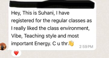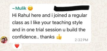Along with learning, we also have a lot of Fun in our Regular Class. However, there are certain benefits that we give the students who have enrolled in our regular class because they are taking the efforts of coming to the class when the others are just thinking about it. Because we want to give those benefits Only to the Serious People, We do not disclose the Fees of the class on the Internet, Whatsapp. or on the phone.
