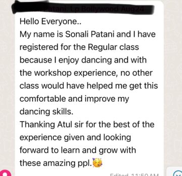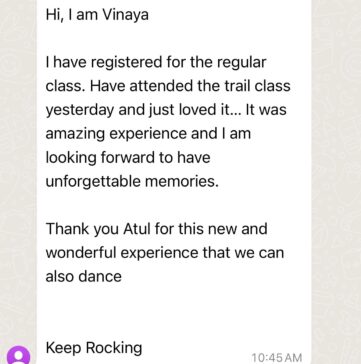 “Classes with Atul are enjoyable, relaxed and Pressure free. He is a Patient and Helpful Teacher. He gives you Confidence to believe YOU CAN DO IT. You also Learn very Interesting Routines with his Style and Unique way of Teaching”